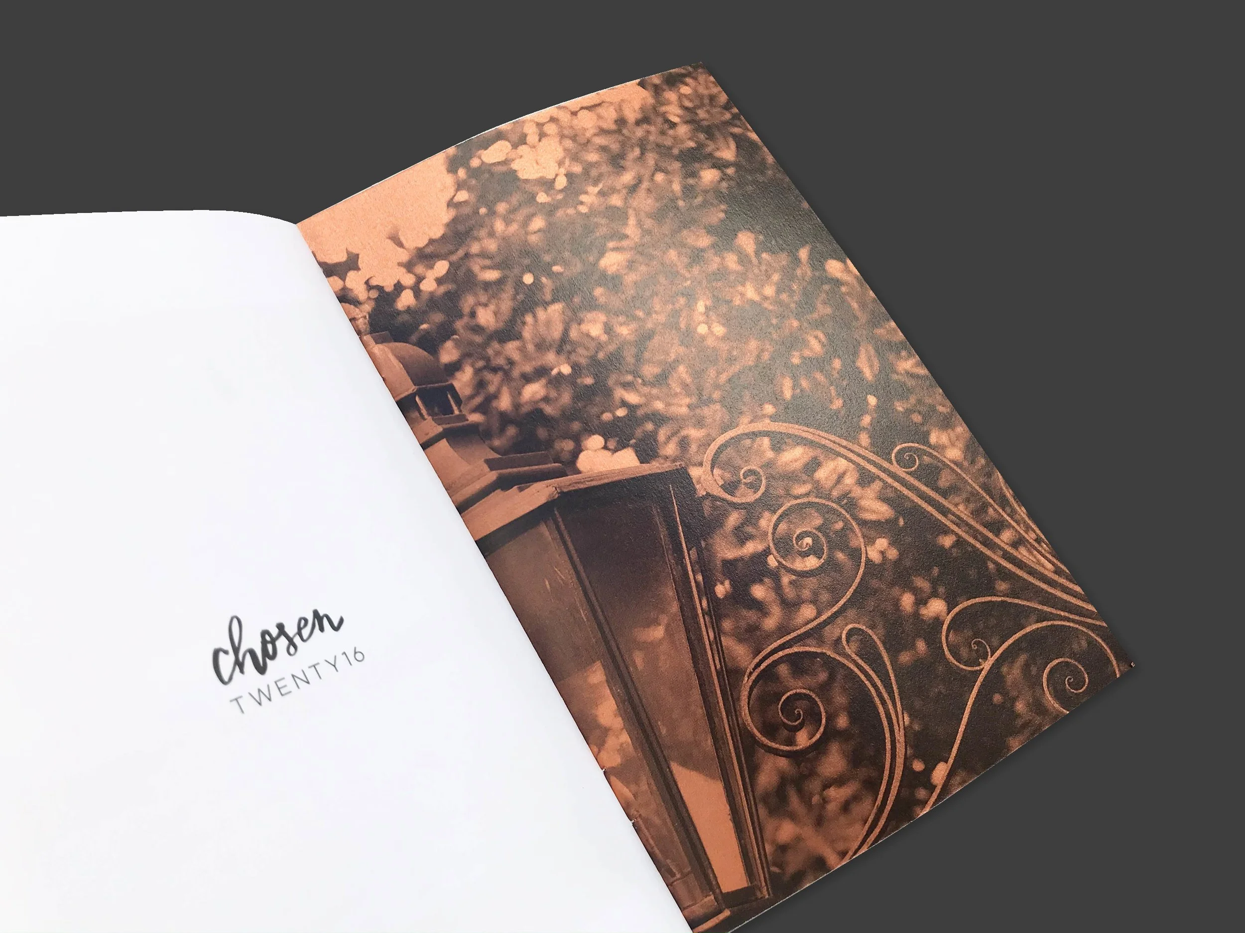 conference booklet with Neenah Pearl Metallic Penny flyleaf pages